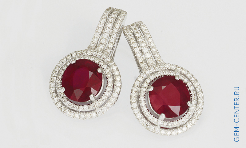 Рис. 1. Серьги с природными рубинами, заполненными стеклом