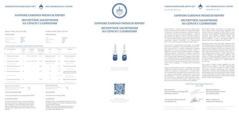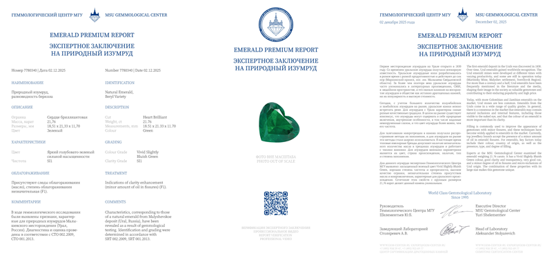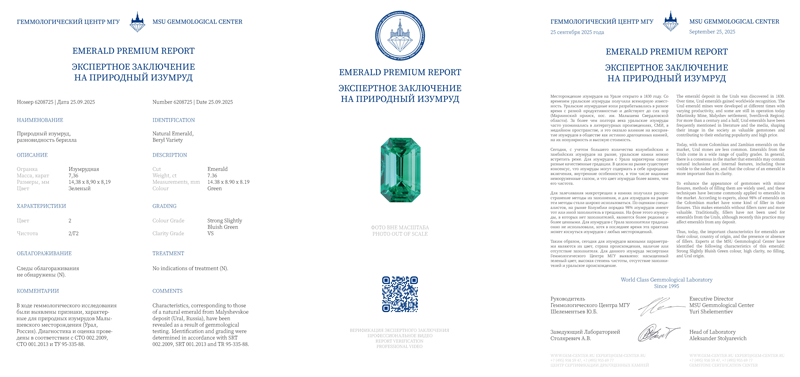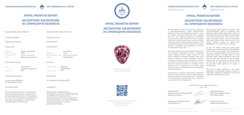 Premium Report (Премиальное экспертное заключение) – документ особого уровня, который лаборатория Геммологического Центра МГУ выдаёт камням, представляющим исключительную геммологическую и рыночную ценность. Это расширенный аналитический и визуальный формат представления камня для коммерческих, инвестиционных и презентационных задач.